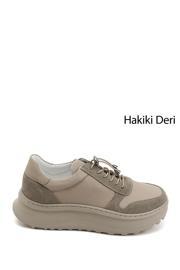 * Hakiki Deri Lastik Bağcıklı Comfort Kadın Sneaker