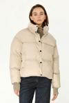 Kadın Bej Rüzgar Geçirmez Suya Dayanıklı Dolumlu Mont | Xs