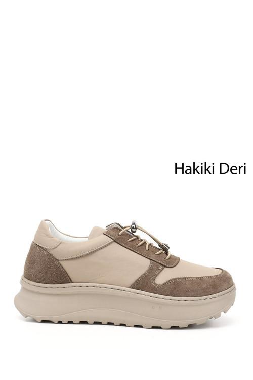 * Hakiki Deri Lastik Bağcıklı Comfort Kadın Sneaker