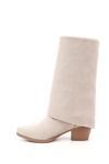 Kadın Bej Süet Sivri Burun Kalın Topuklu Kovboy Çizme