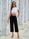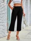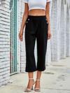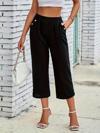 Kadın Beli Lastikli Düğme Ve Cep Detaylı Kapri Ithal Keten Pantolon