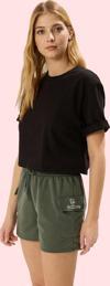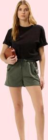PayBuy Kadın Beli Lastikli Kısa Şort Cep Detaylı Örme Slogan Desenli Yazlık Yaz Aylarının Vazgeçilmezi