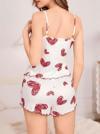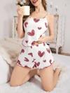 Kadın beyaz Kalp baskılı şortlu gecelik pijama takımı, cesur ve şık bir görünüm yaratır. Yumuşak kumaşı sayesinde rahat kullanım imkanı sunar.