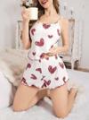 Kadın beyaz Kalp baskılı şortlu gecelik pijama takımı, cesur ve şık bir görünüm yaratır. Yumuşak kumaşı sayesinde rahat kullanım imkanı sunar.