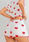 Beyaz kalp desenli şortlu gecelik takımı, eğlenceli ve dikkat çekici bir tasarıma sahiptir. Hafif kumaşı ile rahat kullanım sunarken enerjik bir stil yaratır.
