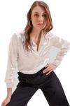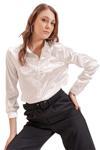 Kadın Beyaz Dökümlü Saten Gömlek · Bedenler: 36/38/40/42 · Kumaş Türü: Saten · Kumaş Özelliği: %100 Polyester · Numune Ürün (S/36/1) Bilgileri · Uzunluk: 63 cm · Göğüs Çevresi: 50 cm · Bel Çevresi: 53 cm · Kol Uzunluğu: 58 cm · Kalıp: Tam · Esneklik: Yok · Astar: Yok · Aksesuar: Yok · Diğer: Ön düğmelidir.