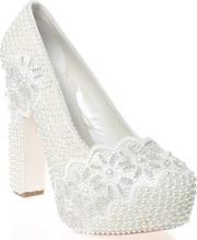 Ersefa Kadın Beyaz Sedef Inci Taş Işlemeli Gelin Ayakkabı Kadın Topuklu Abiye Ayakkabı Şık Gece Ayakkabısı