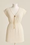 Model: V yaka, yan yırtmaçlı, tokalı mini plaj elbisesi