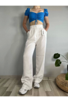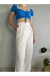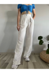 Kadın Beyaz Yüksek Bel Keten Palazzo Pantolon