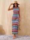 Kadın Bisiklet Yaka Cizgi Desen Süprem Elbise