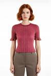 Bisiklet yaka tasarımı, bluzun genel şıklığını tamamlarken, fırfır detaylı kısa kolları feminen bir hava katar ve hareket özgürlüğü sunar. Crop boyu, modern silueti ile genç ve dinamik bir görünüm yaratır, yüksek belli alt giyimlerle harika bir uyum sağlar. Tek plaka dokuma tipi sayesinde ürün, dayanıklı yapısıyla uzun süreli kullanım vadeder. Bakımı kolay olan bu triko bluz, makinede yıkanabilir özelliğiyle pratik bir kullanım sunarken, Fashion Forward tarzınızı yansıtır ve size zahmetsiz bir şıklık sunar.