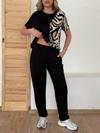 Kadın Bisiklet Yaka Kısa Kol Leopar Desen Bluz Ve Pantolon Ikili Takım