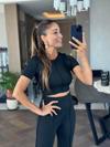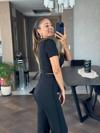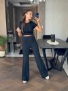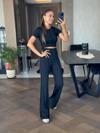 Kadın Bisiklet Yaka Pliseli Bluz Ve Ispanyol Paca Pantolon Ikili Takım