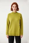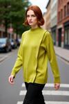 Ürün Özellikleri: Regular kalıp, 70% viskoz 30% poliamid materyal, düz desen, bisiklet yaka, standart kol, triko kumaş, yeşil renk.