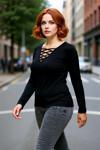 Vücudu saran bodycone silueti, hatlarınızı nazikçe vurgularken, standart uzun kol yapısı sayesinde rahat bir kullanım deneyimi sunar. Triko kumaşının ince dokusu, hafifliğiyle öne çıkar ve katmanlı giyim için mükemmel bir seçenek oluşturur. Tek plaka dokuma tekniği, ürünün dayanıklılığını artırırken, uzun süreli kullanıma olanak tanır. Yaka detayındaki çapraz bağcıklar, bluzunuza dinamik bir karakter kazandırır. Makinede yıkanabilir olması, pratik bir bakım imkanı sunarak günlük yaşamınızı kolaylaştırır.