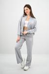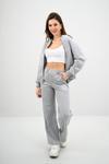 Şıklık ve konforu bir araya getiren bu eşofman takımı, 36-42 bedene uyumludur. Zarif gül işlemeleriyle dikkat çeken özel bir tasarıma sahiptir. Üst kısmında fermuar detayı bulunan model, uzun kollu yapısıyla rahat bir kullanım sunar. Alt kısmı yüksek bel ve bol paça kesimiyle hareket özgürlüğü sağlarken, cepli tasarımıyla pratiklik sunar. Dayanıklı ve yumuşak dokulu 2 iplik kumaştır. Manken ’in üzerindeki beden 36 bedendir. (Bedenler arası +/- 2cm fark olmaktadır.) Model Ölçüleri Boy: 1.78 Kilo: 59 Göğüs: 89 Bel: 67 Basen: 97