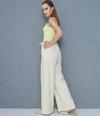 Ruby Baskılı Bağcıklı keten pantolon krem