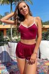 Kadın Bordo Askılı Crop Top Ve Şortlu Gecelik Takım