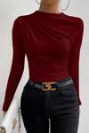 Kadın Bordo Belden ve Boyundan Büzgü Detaylı Uzun Kollu Bluz