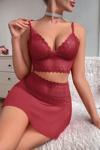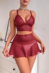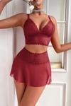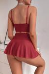 • Kırmızı Beli Dantelli Tül Etek ve Braletli Gecelik Takımı