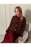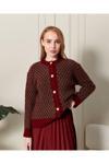 - Zarif bisiklet yakası ile modern ve şık bir görünüm sunan hırka, günlük kombinlerinizde vazgeçilmez bir parça olacak.; - Altın rengindeki düğmelerle zenginleştirilmiş deseniyle göz alıcı bir stil oluştururken, cepsiz tasarımı rahat kullanım sağlar.; - Orta kalınlığındaki triko dokusu sayesinde mevsim geçişlerinde ideal sıcaklık dengesi sunar.; - Sade ve düz kesimiyle her türlü alt giyimle kolayca uyum sağlayan bu hırka, basic koleksiyonunuzda yerini almayı beklemekte.; - Smart persona'ya hitap eden bu model, trend ortamlarda bile zarafetinizi korumanız için idealdir.; - Her yaş grubuna hitap eden geniş kullanıcı kitlesi düşünülerek tasarlanmıştır; böylece tüm yetişkin kadınların gardrobunda bulunabilir.; - İlkbahar/sonbahar sezonlarına uygun olarak üretilmiş olan bu hırkanın standart boyutuyla her vücut tipine uyum gösterir.; - Regular kalıp seçeneğiyle konforlu oturuşa sahip olan ürünümüz, gün boyu rahat hareket etmenize olanak tanırken aynı zamanda şıklığınızdan ödün vermeyin