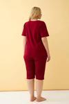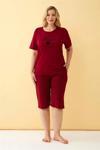 Kadın Bordo Kalp Desenli Büyük Beden Kapri Pijama Takımı