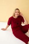 Beruflic Kadın Bordo Kalp Desenli Büyük Beden Kapri Pijama Takımı