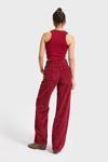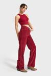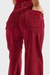 Its Basic Kadın Bordo Renk 26w5-35 Straight Fit Yüksek Bel Kalın Fitilli Velvet Kadife Kumaş Pantolon