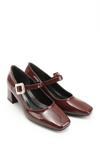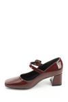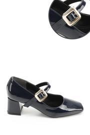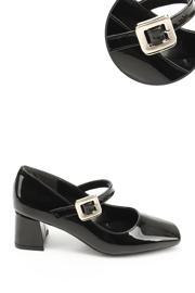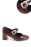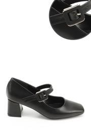 * Suni Deri Küt Burun Kare Ökçe Mary Jane Ayakkabı