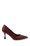 * Gön Suni Deri Sivri Burun Kadeh Ökçe Kadın Stiletto
