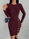 Kadın Bordo Uzun Kollu Bisiklet Yaka Yan Yırtmaç Düğme Detay Kısa Kaşkorse Elbise