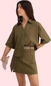 Rahatlığı ve şıklığı bir arada arayan kadınlar için özel olarak tasarlanan bu haki gömlek, yaz aylarının vazgeçilmez parçası olacak. %100 pamuk gabardin kumaştan üretilen gömlek, nefes alabilir yapısıyla gün boyu konfor sunuyor. Boxy kalıbı ile vücuda tam oturan bir uyum sağlarken, Truvakar kol detayı modern ve şık bir görünüm katıyor. Gömlek yakası ve düz deseniyle her kombine kolayca uyum sağlayan bu parça, iş hayatınızda ya da günlük yaşamınızda şıklığınızı tamamlayacak. Pamuklu yapısı sayesinde ütüleme gerektirmez, kolayca temizlenebilir ve uzun süre dayanıklılığını korur. Boyu crop kesim olup yüksek bel pantolon ve eteklerle mükemmel bir uyum sağlar. Yaz günlerinde hem serin hem şık kalmak isteyen kadınlar için idealdir.