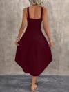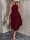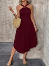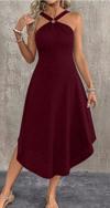 Kadın Boyundan çapraz Askılı Halka Detaylı Asimetrik Kesim Viskon Elbise