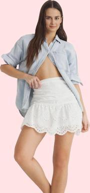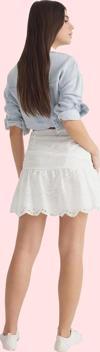 Yaz aylarının sıcak günlerinde serin ve şık kalmanıza yardımcı olacak bu beyaz brode şort etek, gardırobunuzun yeni gözdesi olacak. Hafif ve nefes alan %100 pamuklu kumaşıyla gün boyu rahatlık sunarken, zarif brode detaylarıyla da stilinizi tamamlayacak. Yüksek bel tasarımı, şık ve modern bir görünüm sağlar. Kısa boyu ile yaz kombinlerinizde özgürce hareket etmenizi sağlayacak. Dar paçası ile bacaklarınızı daha uzun ve ince gösterir. Günlük kullanım için ideal olan bu şort etek, plaja, alışverişe veya arkadaşlarınızla buluşmaya giderken şıklığınızdan ödün vermeden rahatlığı hissetmenizi sağlayacak.