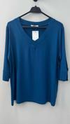 Curvy Trend Büyük Beden Geniş V Yaka Yarım Kol Oval Yırtmaç Bluz