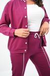 1950 Kolları Taşlı Tam Kalıp Tarz Kadife Büyük Beden Eşofman Takım Mürdüm - Image 1