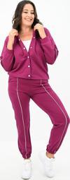 Koza Butik Kadın Büyük Beden Fermuarlı Yaka Şerit Detaylı Eşofman Takımı 8135-25