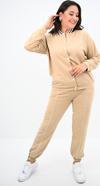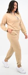 Konforu ve şıklığı bir arada sunan bu büyük beden eşofman takımı, 42-50 bedene uyumludur.Üst kısmı, ön yüzdeki çıtçıt kapama detayı ile dikkat çeker, bu detay hem pratik hem de estetik bir görünüm sunar. Alt kısmı yüksek bel tasarımıyla rahat bir fit sağlar ve bağlama detayı, kişisel tercihinize göre ayar yapmanıza olanak tanır. Paçalarındaki lastik detayı, fit bir görünüm ve konforlu bir kullanım sunar. 2 iplik kumaştır. Manken ’in üzerindeki beden 44 bedendir. (Bedenler arası +/- 2cm fark olmaktadır.) Model Ölçüleri Boy: 1,80 Kilo: 90 Göğüs: 90 Bel: 89 Basen: 116