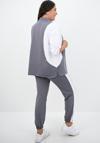 Koza Butik Kadın Büyük Beden Dik Yaka Fermuarlı Eşofman Takımı 8133-25 Gri Melaj 5XL