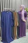 Melsay Butik Püsküllü Cepli Kadın Uzun Kollu Mor Tesettür Elbise