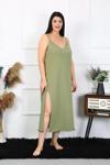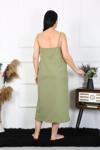 Çamaşır Kenti Kadın Büyük Beden İp Askılı Pamuklu haki Uzun Gecelik, rahatlığı ve şıklığı bir arada sunar.
