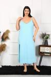 Çamaşır Kenti Kadın Büyük Beden İp Askılı Pamuklu Mavi Uzun Gecelik, rahatlığı ve şıklığı bir arada sunar.