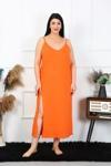 Çamaşır Kenti Kadın Büyük Beden İp Askılı Pamuklu Turuncu Uzun Gecelik, rahatlığı ve şıklığı bir arada sunar.