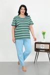 Kadın Büyük Beden Kısa Kol Penye Pijama Takımı Petrol , kaliteli ve şık tasarımıyla gecelerinize konfor ve stil katar.