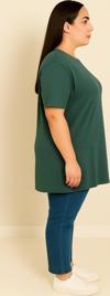 Gardırobunuzun vazgeçilmezi olacak bu kadın büyük beden basic oversize tişört, 42-52 bedene uyumludur. Sade ve modern tasarımıyla günlük stilinize konfor katar. Yumuşak ve esnek likralı süprem kumaş ile üretilmiştir, vücudu sıkmadan rahat bir kullanım sunar. Kısa kollu ve bisiklet yaka yapısı ile hem tek başına hem de katmanlı kombinlerde idealdir. Manken ’in üzerindeki beden 44 bedendir. (Bedenler arası +/- 2cm fark olmaktadır.) Model Ölçüleri Boy: 1,72 Kilo: 90 Göğüs: 104 Bel: 88 Basen: 115 Kumaş İçeriği : %95 Pamuk %5 Elastan Üst Boy : 79 cm’dir. Göğüs : 130 cm’dir.