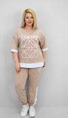 Koza Butik Kadın Büyük Beden Taş Baskı Detaylı Yüksek Bel Eşofman Takımı 8175-25