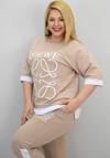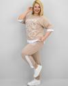Kadın Büyük Beden Taş Baskı Detaylı Yüksek Bel Eşofman Takımı 8175-25 - Image 1