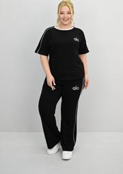 Günlük şıklığı ve rahatlığı bir araya getiren bu kadın büyük beden eşofman takımı, 42-50 bedene uyumludur. Üst parçası kısa kollu ve bisiklet yaka tasarıma sahiptir. Göğüs kısmında zarif nakış işleme detayı yer alır. Alt parça ise cepli, yüksek bel ve bol paça formuyla gün boyu konfor sunar. Hem üst hem alt parçada yan şerit detayları bulunur ve bu detaylar takıma sportif bir görünüm kazandırır. Yumuşak dokulu 2 iplik kompakt kumaşı sayesinde hareket özgürlüğü ve rahatlık sağlar. Manken ’in üzerindeki beden 44 bedendir. (Bedenler arası +/- 2cm fark olmaktadır.) Model Ölçüleri Boy: 1,72 Kilo: 90 Göğüs: 104 Bel: 88 Basen: 115
