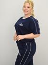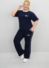 Günlük şıklığı ve rahatlığı bir araya getiren bu kadın büyük beden eşofman takımı, 42-50 bedene uyumludur. Üst parçası kısa kollu ve bisiklet yaka tasarıma sahiptir. Göğüs kısmında zarif nakış işleme detayı yer alır. Alt parça ise cepli, yüksek bel ve bol paça formuyla gün boyu konfor sunar. Hem üst hem alt parçada yan şerit detayları bulunur ve bu detaylar takıma sportif bir görünüm kazandırır. Yumuşak dokulu 2 iplik kompakt kumaşı sayesinde hareket özgürlüğü ve rahatlık sağlar. Manken ’in üzerindeki beden 44 bedendir. (Bedenler arası +/- 2cm fark olmaktadır.) Model Ölçüleri Boy: 1,72 Kilo: 90 Göğüs: 104 Bel: 88 Basen: 115