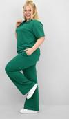 Rahatlık ve şıklığı bir arada sunan bu kadın büyük beden eşofman takımı, 42-50 bedene uyumudur. Üst kısmı polo yaka ve kısa kollu tasarımıyla modern bir duruş sergilerken, alt parçası yüksek bel ve cepli bol paça pantolonu ile gün boyu konfor sunar. Esnek yapıya sahip iki iplik kumaşı sayesinde hem günlük kullanımda hem de hafif sportif aktivitelerde tercih edilebilir. Manken ’in üzerindeki beden 44 bedendir. (Bedenler arası +/- 2cm fark olmaktadır.) Model Ölçüleri Boy: 1,72 Kilo: 90 Göğüs: 104 Bel: 88 Basen: 115 Kumaş İçeriği : %80 Pamuk %15 Polyester %5 Elastan Üst Boy : 67 cm’dir. Göğüs : 116 cm’dir. Kol Boyu : 24 cm’dir. Bel : 78 cm’dir. Basen : 76 cm’dir. Alt Boy : 105 cm’dir.